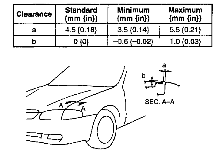 4. If not as specified, loosen the trunk lid hinge installation nuts and the trunk lid striker installation bolts, and reposition the trunk lid.