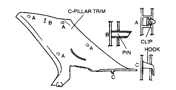 5. Pull the C-pillar trim upward to disengage hook C from the body.