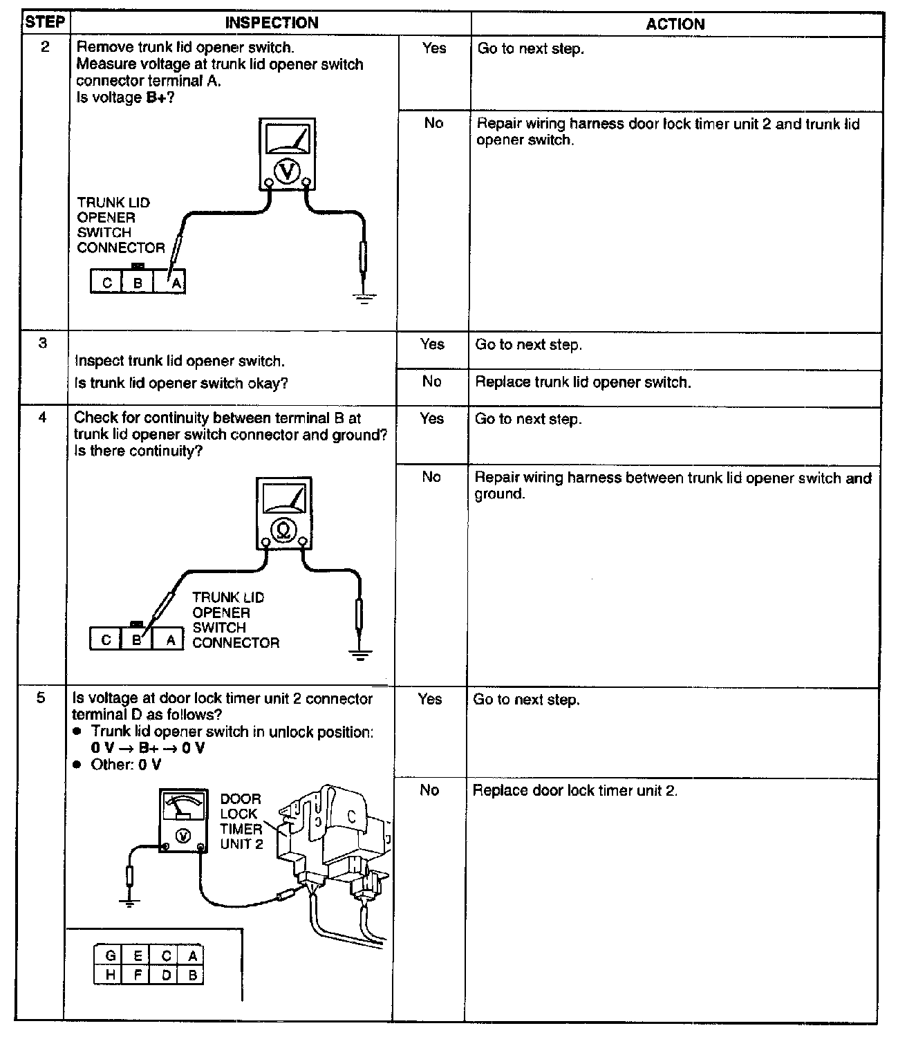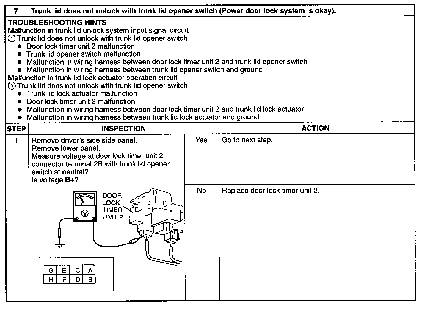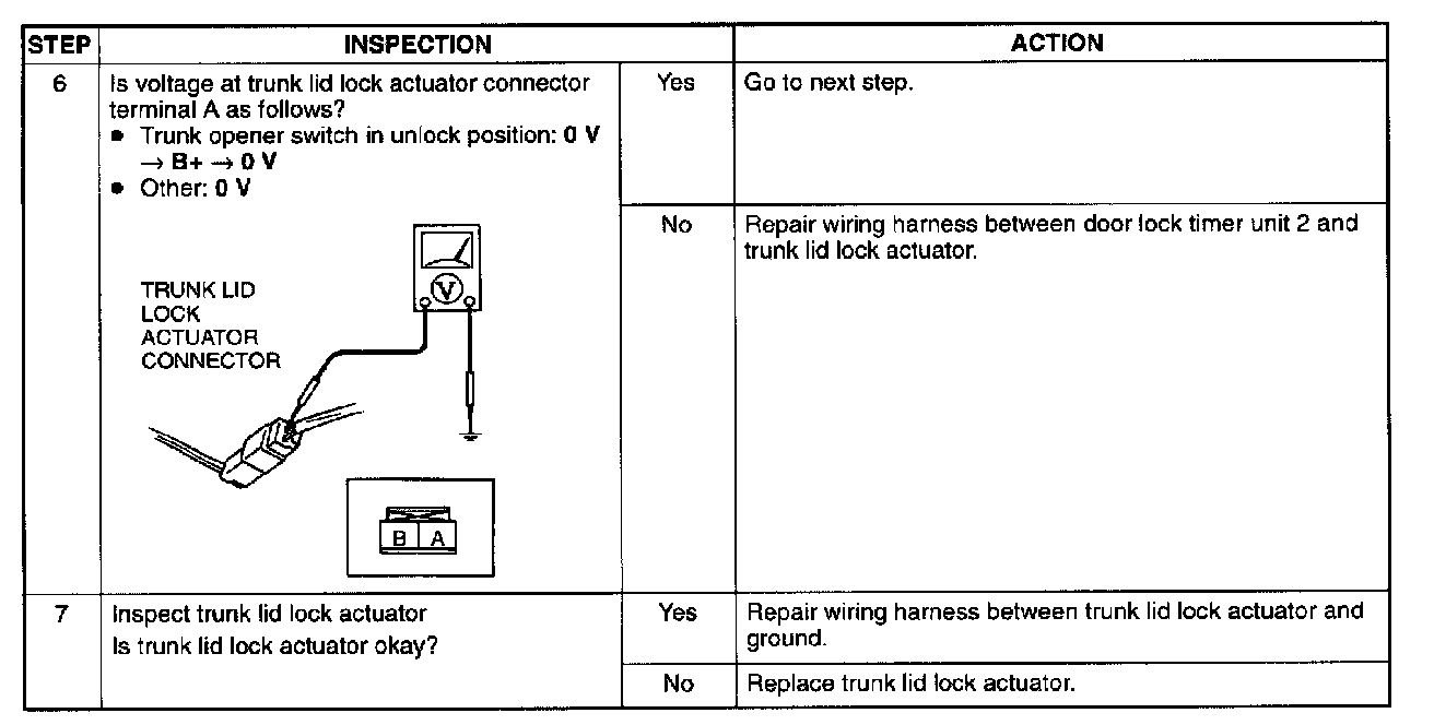 7. Trunk Lid Does Not Unlock With Trunk Lid Opener Switch