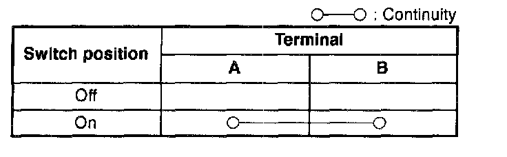 3. Check for continuity between the trunk lid opener switch terminals by using an ohmmeter.