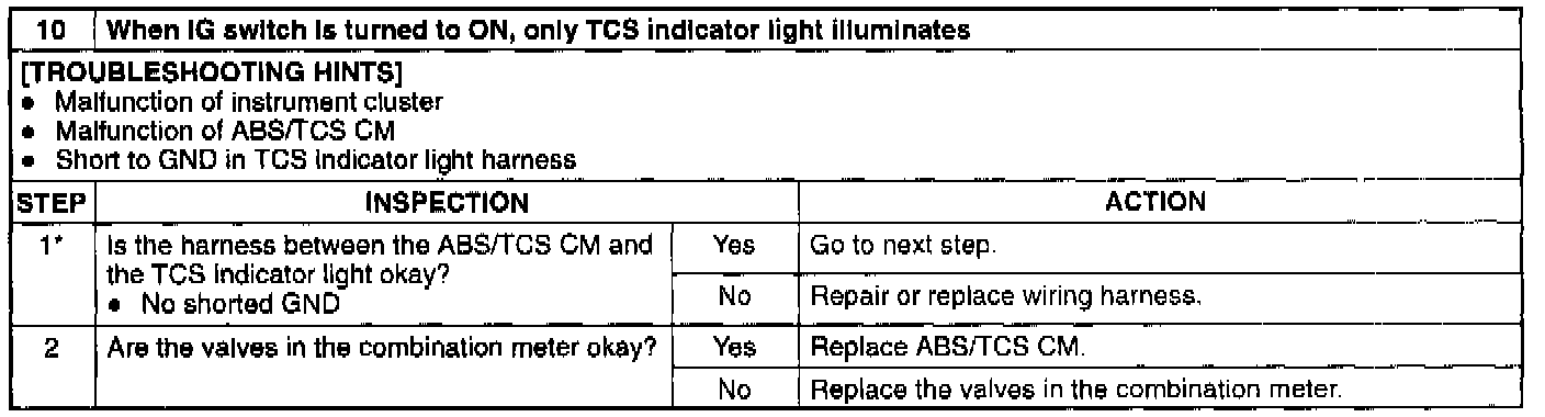IGN Switch Is ON, Only TCS Indicator Light Illuminates