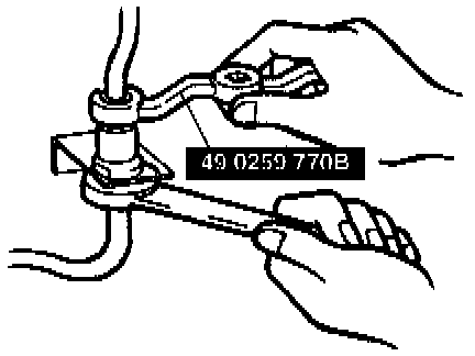 4. Connect the flexible hose to the brake pipe. Verify that the hose is not twisted.