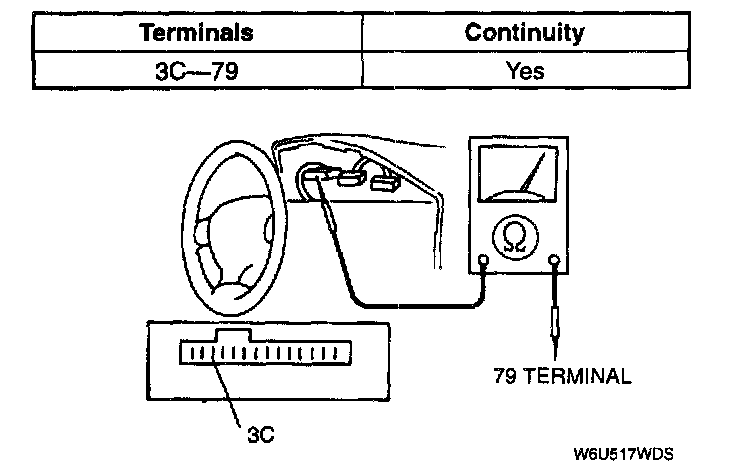 3. Check continuity between terminal 3C and powertrain control module terminal 79.