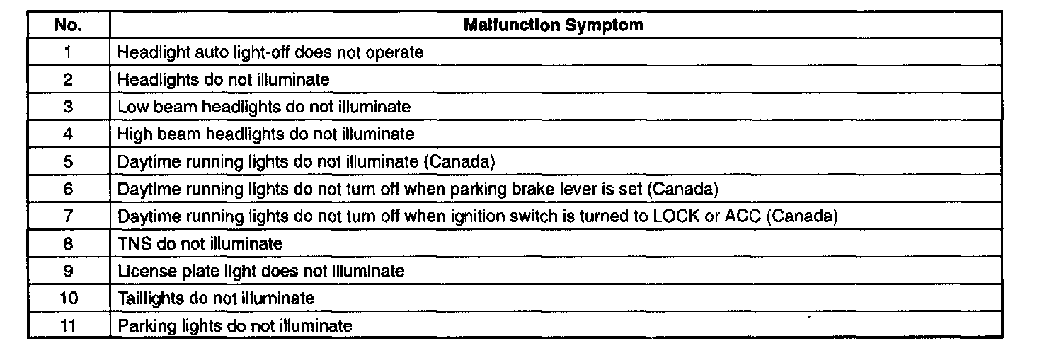 Use the chart below to verify the symptoms of the trouble in order to diagnose the appropriate area