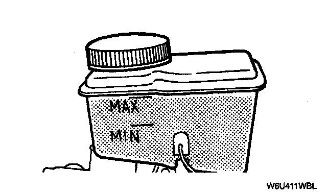 2. Verify that the fluid level in the reservoir is between the MAX and MIN lines on the reservoir.