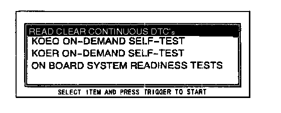 3. Move the cursor to READ/CLEAR CONTINUOUS DTCs. Press the trigger key to enter this selection.