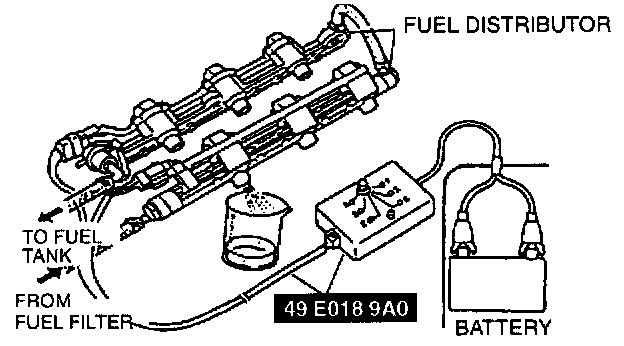 8. Measure the injection volume of each fuel injector by using a graduated container.