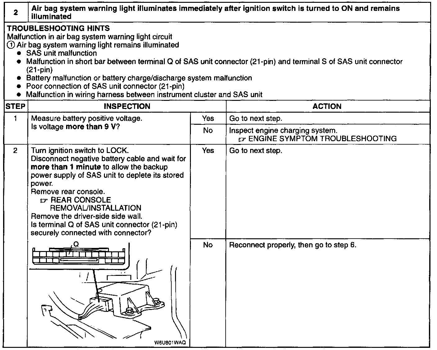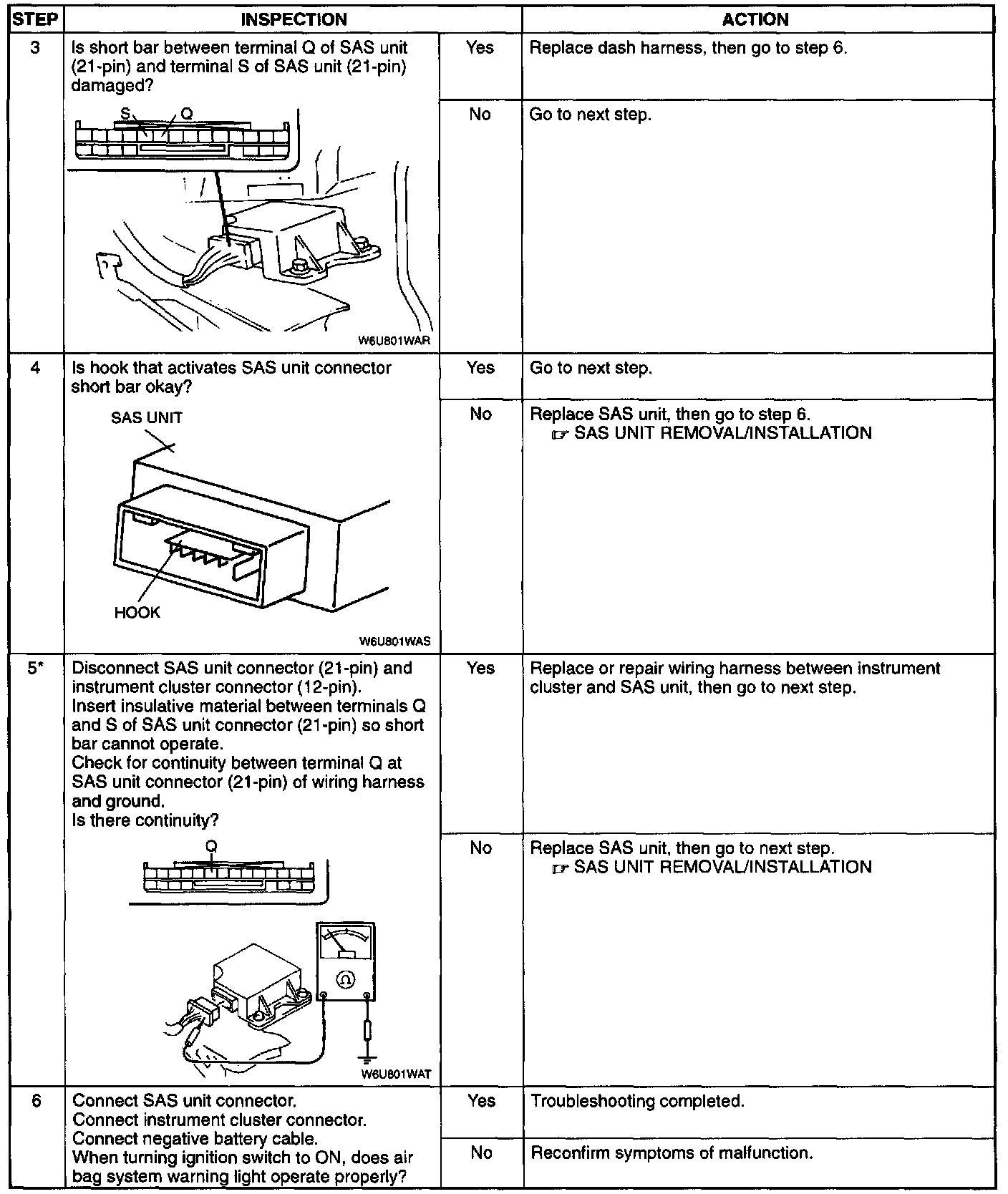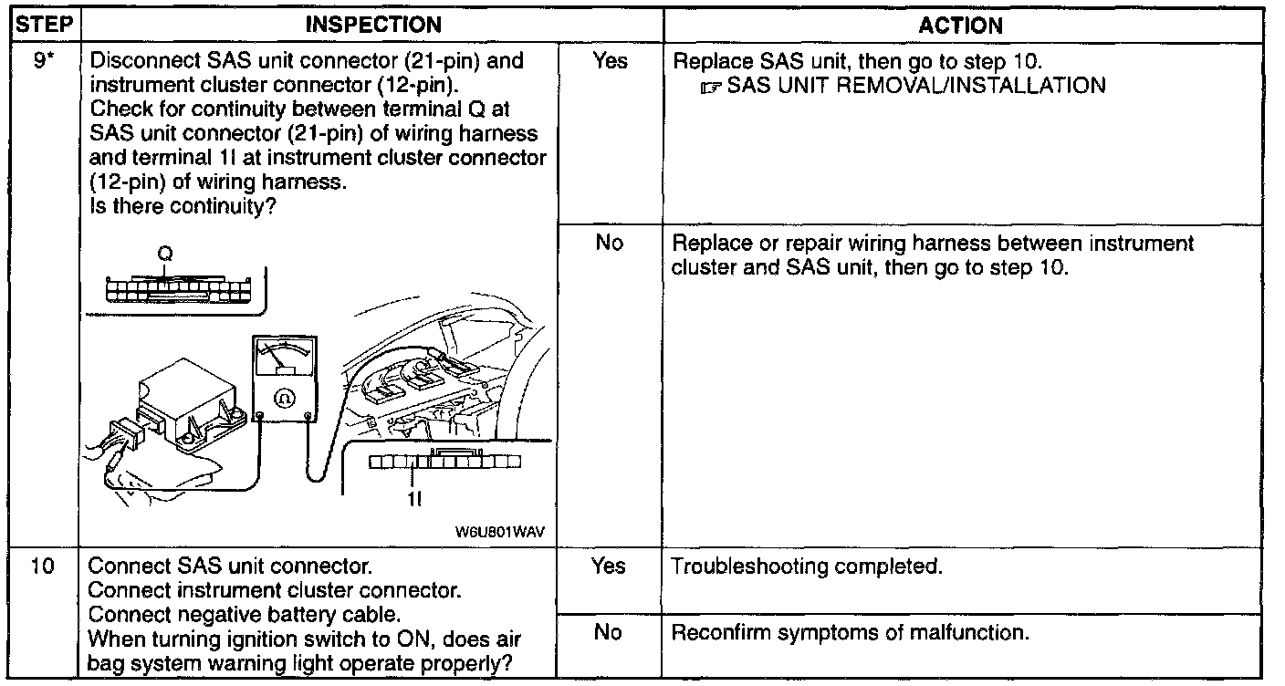 4. Simultaneous poor contact in wiring harness between terminal S of SAS unit connector (21-pin) and ground terminal X of SAS unit connector (21-pin) and ground