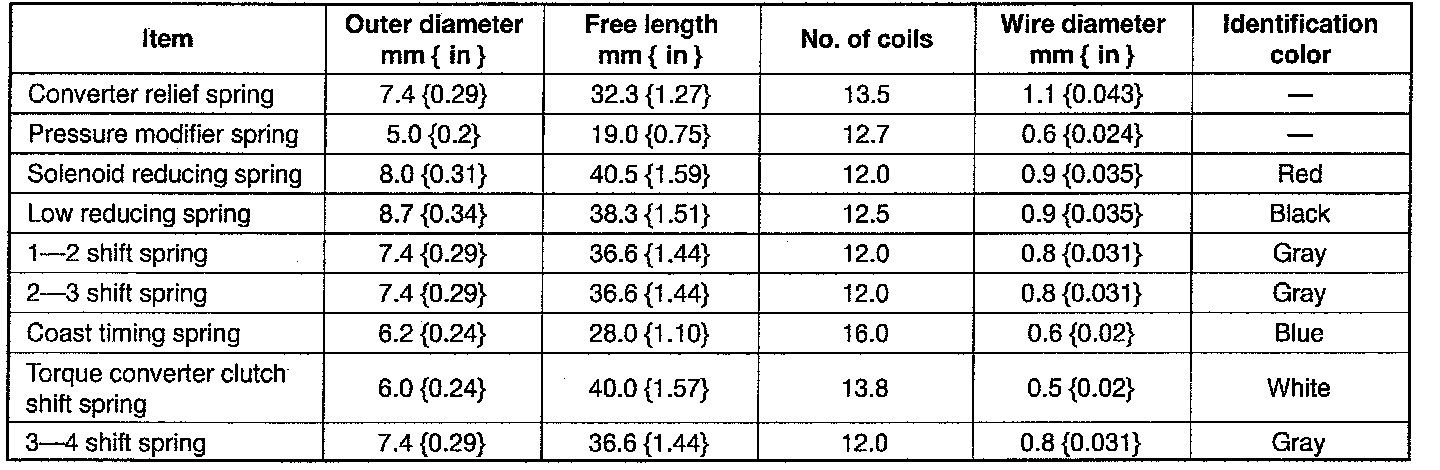 MAIN CONTROL VALVE BODY DISASSEMBLY / INSPECTION / ASSEMBLYCAUTION: Denting or scratching these precisely machined components will reduce the ability of the transaxle to shift properly. When handling these components or the valve body that contains them, be careful not to drop or hit them.
