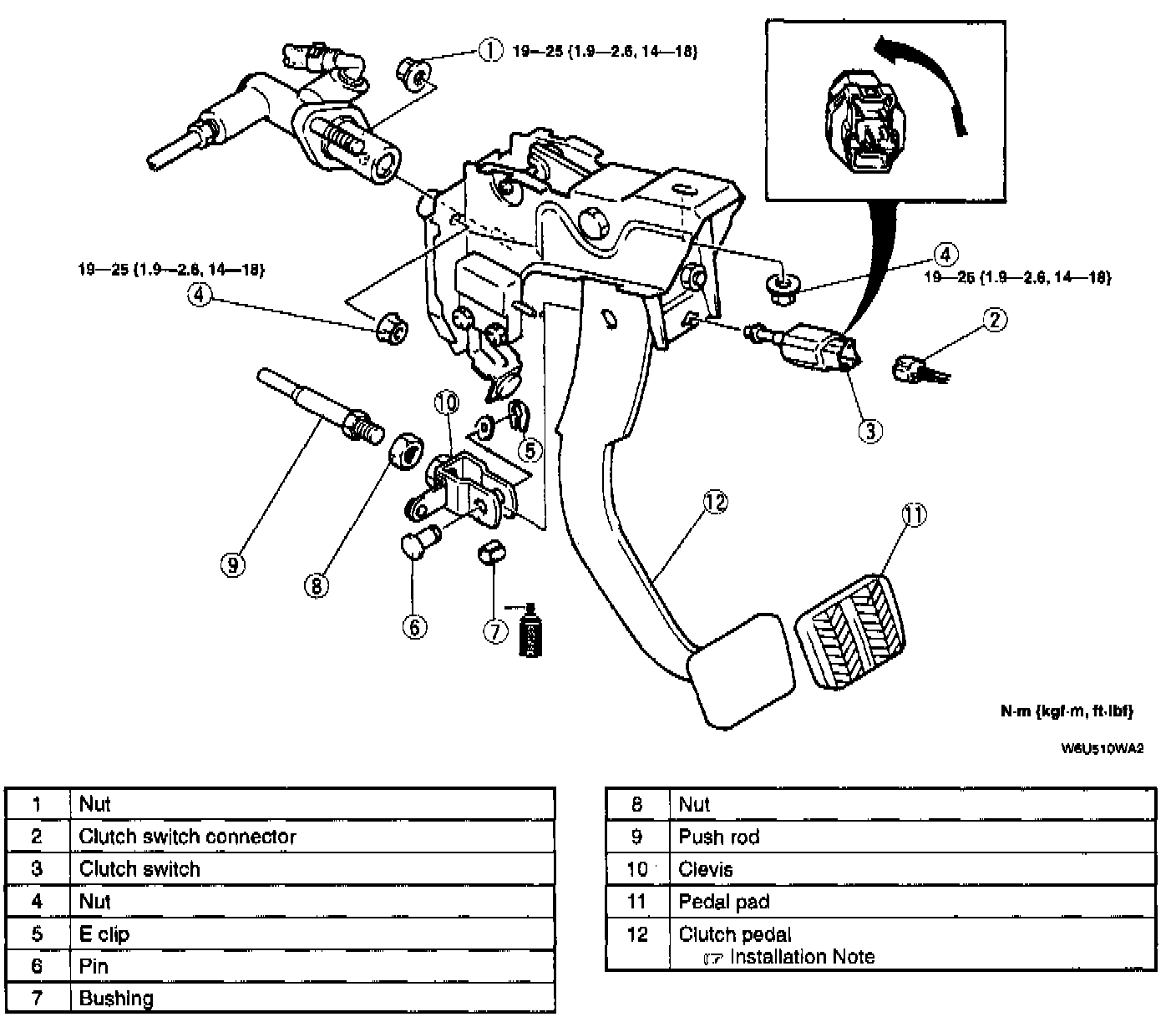 CLUTCH PEDAL REMOVAL/INSTALLATION1. Disconnect the negative battery cable.