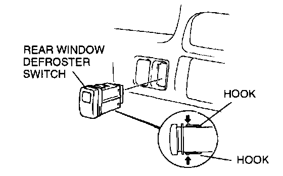 Press the hooks of the rear window defroster switch and pull the switch out.