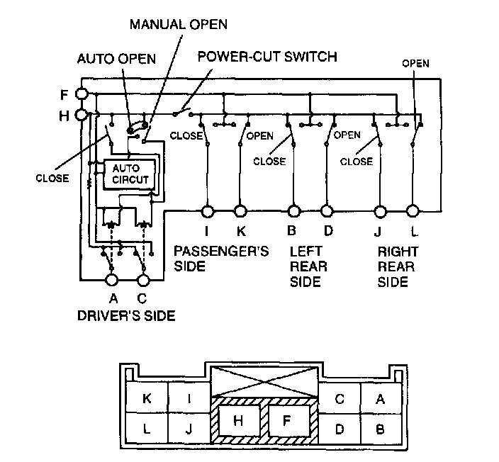 4. When checking the driver's side, connect the battery positive voltage to terminal H and connect the ground to the terminal F.