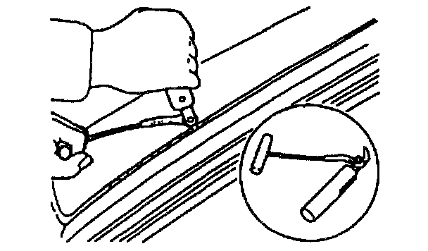 ^ For the areas of the sealant that are difficult to cut, use a piano wire and follow the procedures under "Reusing Rear Window Glass".