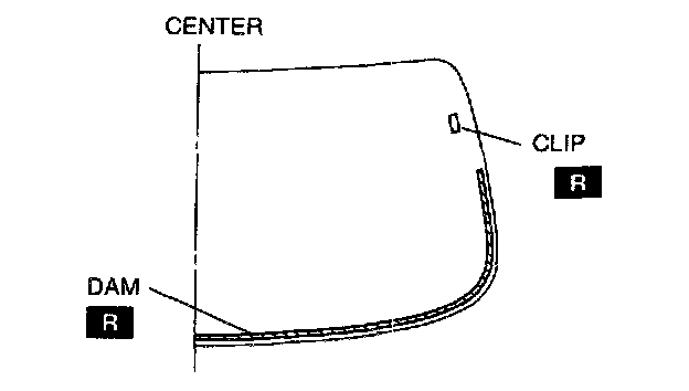 10. Once the primer is dry, apply sealant around the entire circumference to fill the gap between the dam and the edge of the molding with a 11-13 mm (0.44-0.51 in) high 5 mm {0.2 in} wide bead of sealant. Apply sealant beside the molding.