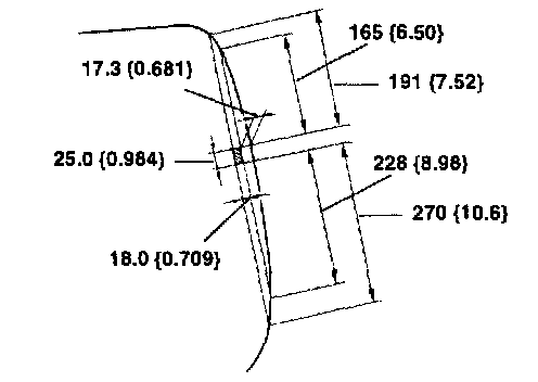 12. Verify that the gap along the upper edge is 6.8 mm {0.27 in}, lower edge is 6.7 mm {0.26 in} and sides edge are 7.1 mm {0.28 in}.
