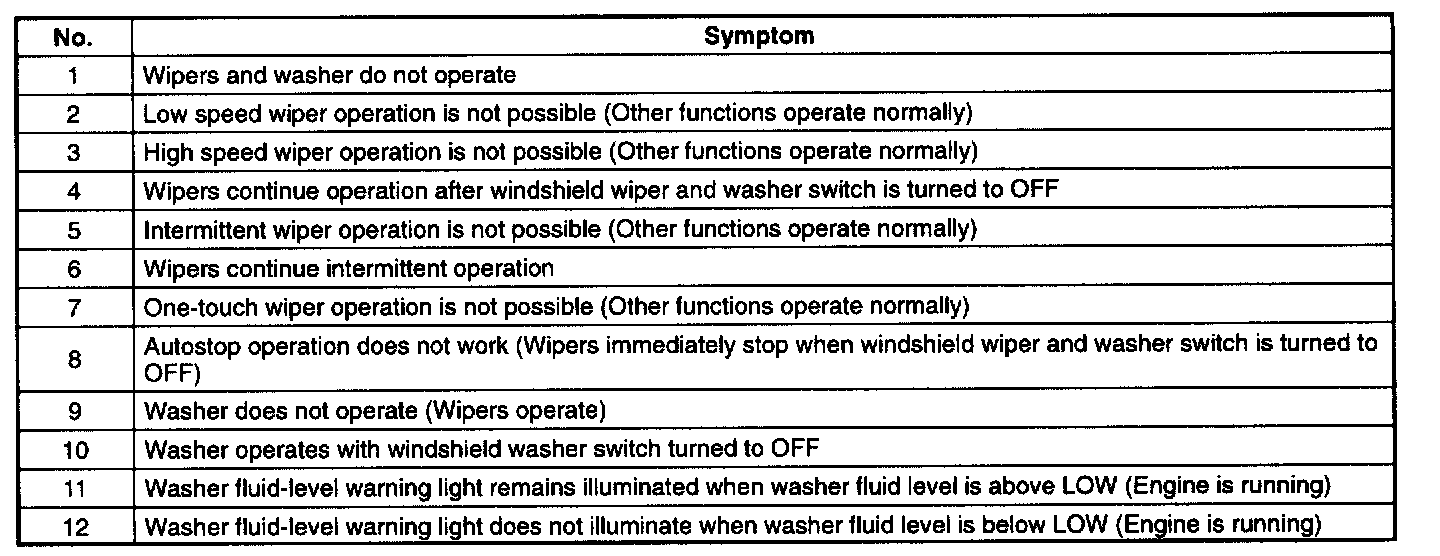 Wiper/Washer Systems Symptom Troubleshooting