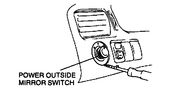 1. Disconnect the negative battery cable.2. Insert a tape-wrapped, flathead screwdriver between the power outside mirror switch and the meter hood.