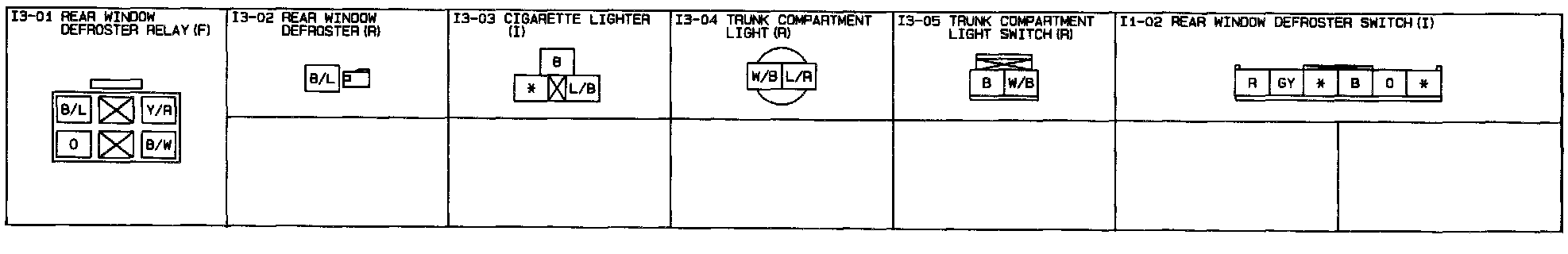 Rear Window Defroster, Cigarette Lighter, Trunk Compartment Light- Connectors: