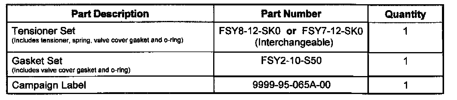 Two different suppliers produced tensioners for the 1998 four-cylinder FS engine. Only tensioners produced by Koyo require replacement. Please see Attachment II for detailed inspection procedures.
