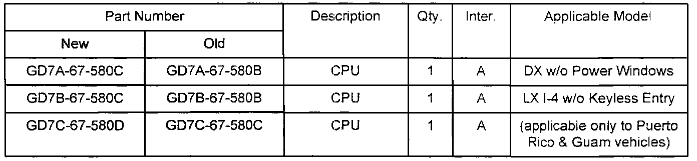 Customers complaining of this concern should have the vehicle inspected and if necessary, have the new CPU installed.