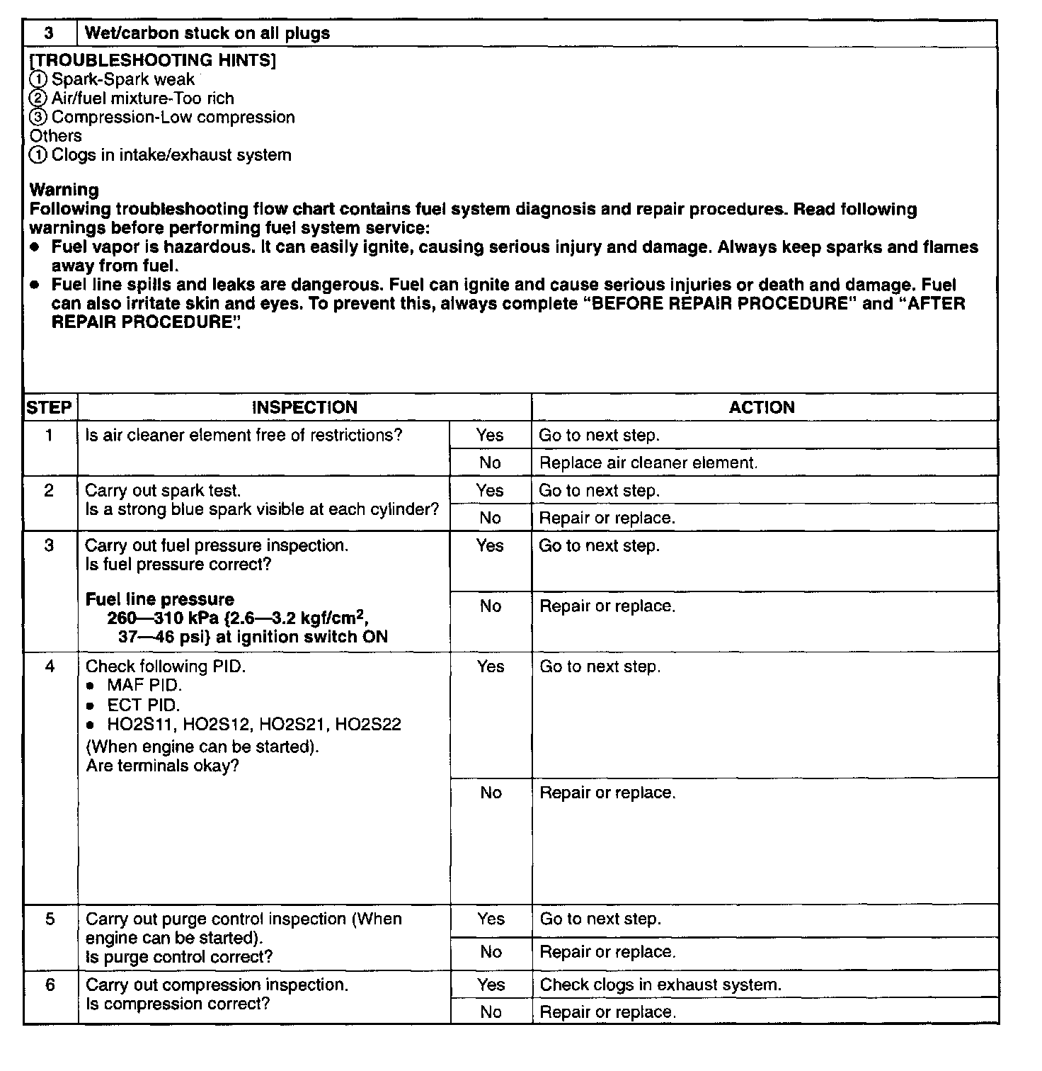 Checking spark plugs condition, can determine whether problem is related to a specific cylinder possibly all cylinders.