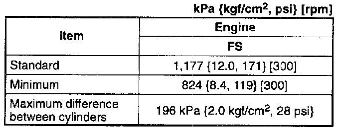 (3) If the compression in adjacent cylinders stays low, the cylinder head gasket may be damaged or the cylinder head is distorted and overhaul is required.