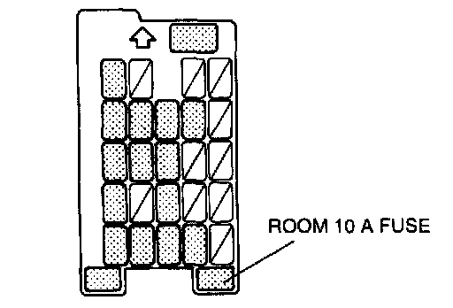 NOTE: When the ROOM fuse is burnt or removed, the malfunction indicator lamp illuminates. If the ROOM fuse is replaced or installed with the ignition switch at ON, the malfunction indicator lamp will continue to illuminate.1. Turn the ignition switch to LOCK.
