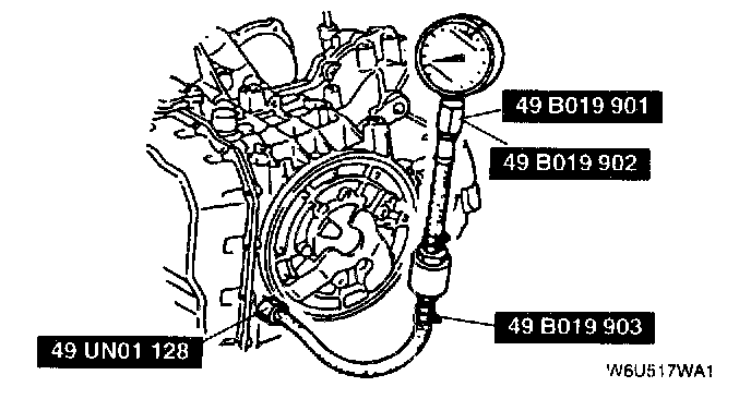 2. Connect the SSTs (49 UN01 128, 49 B019 901, and 49 B019 903) to the line pressure inspection port.