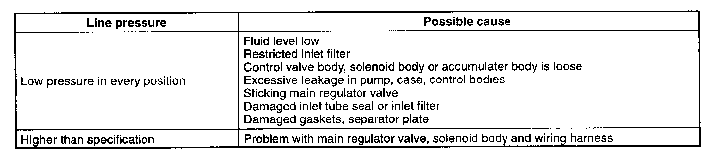 4. While depressing the brake pedal move the shifter to each sector position and record line pressure at engine idle.