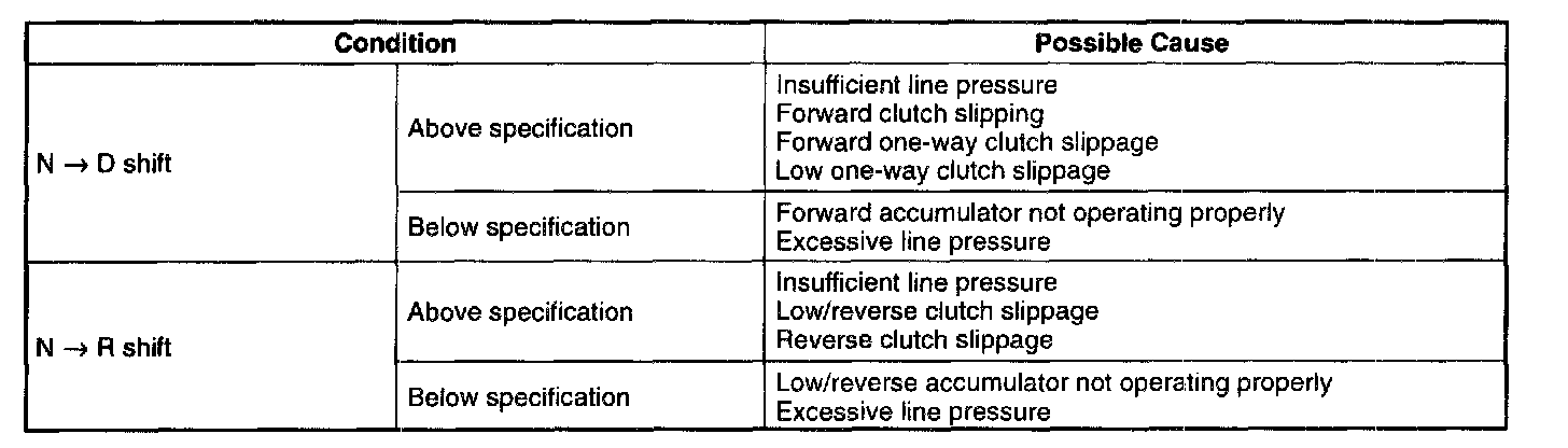 This test measures time lag as a means of checking the hydraulic components and the friction elements.