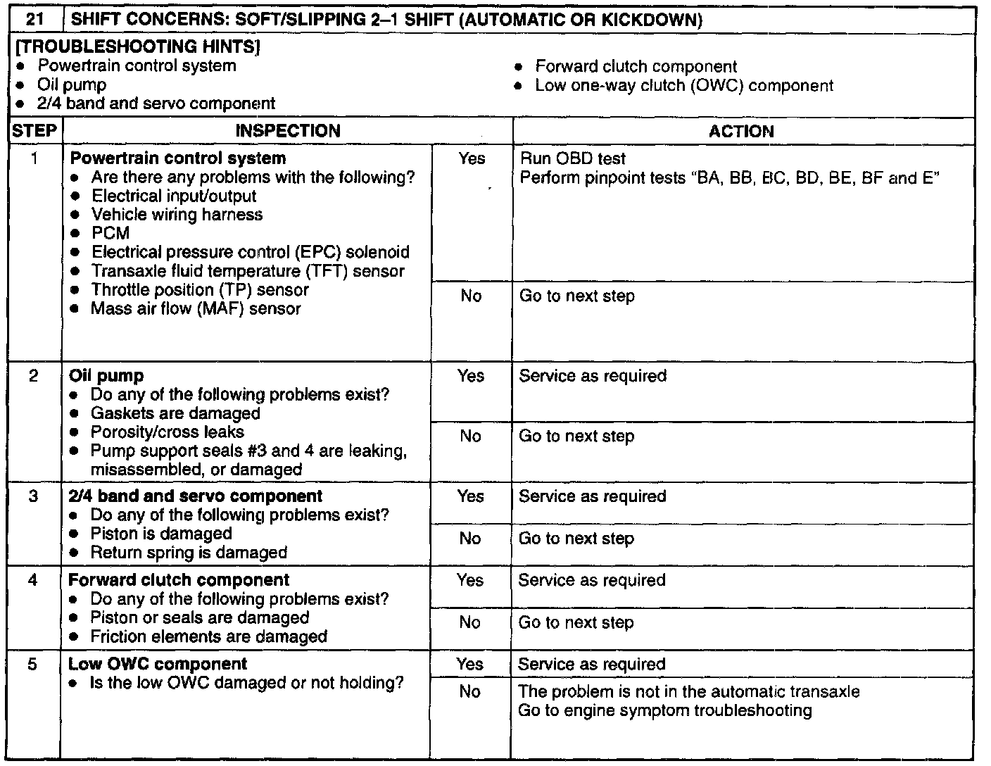 21: Shift Concerns: Soft/Slipping 2-1 Shift (Auto/Kickdown)