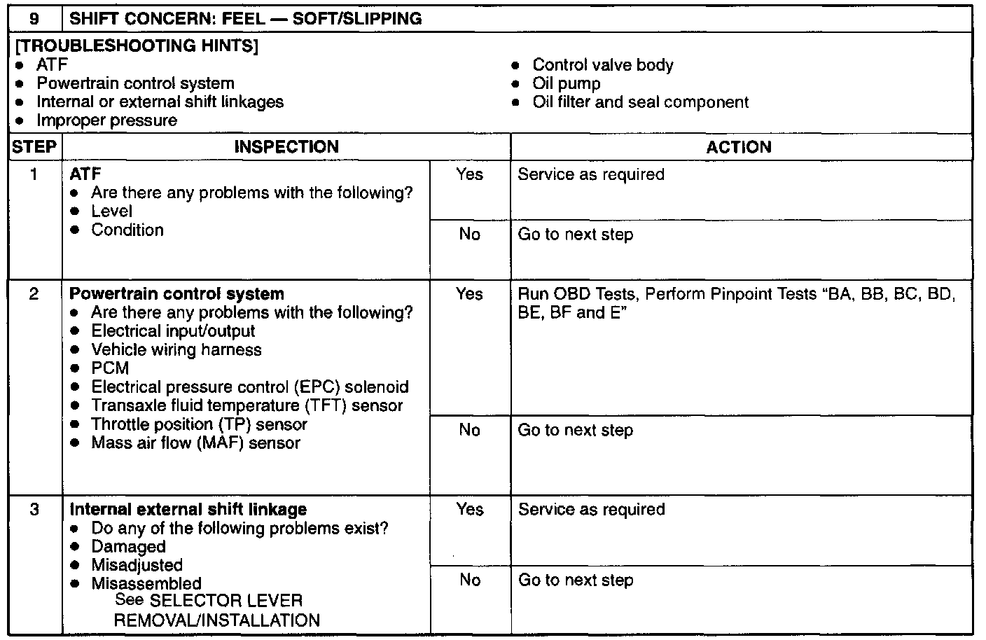 9: Shift Concern: Feel: Soft/Slipping