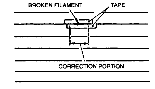 1. Use white gasoline to clean around the damaged section of the filament.2. Attach tape above and below the damaged section of the filament.