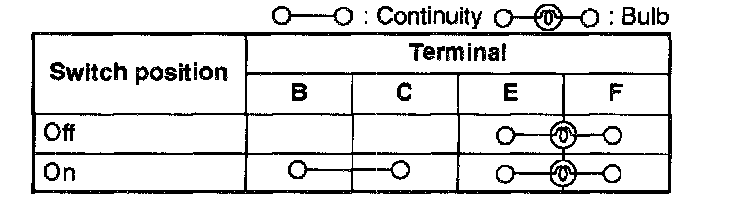 Inspect for continuity between the rear window defroster switch terminals by using an ohmmeter.