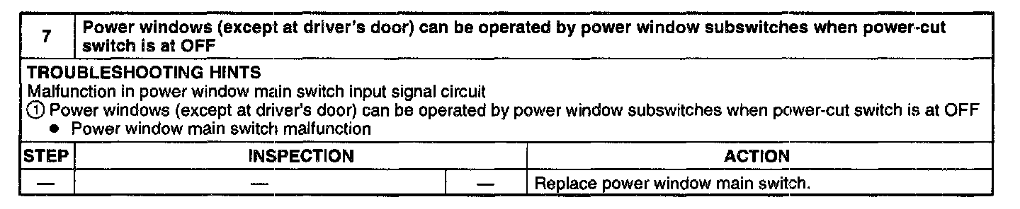 7. Power Windows Operated By Subswitches Power-Cut SW Off