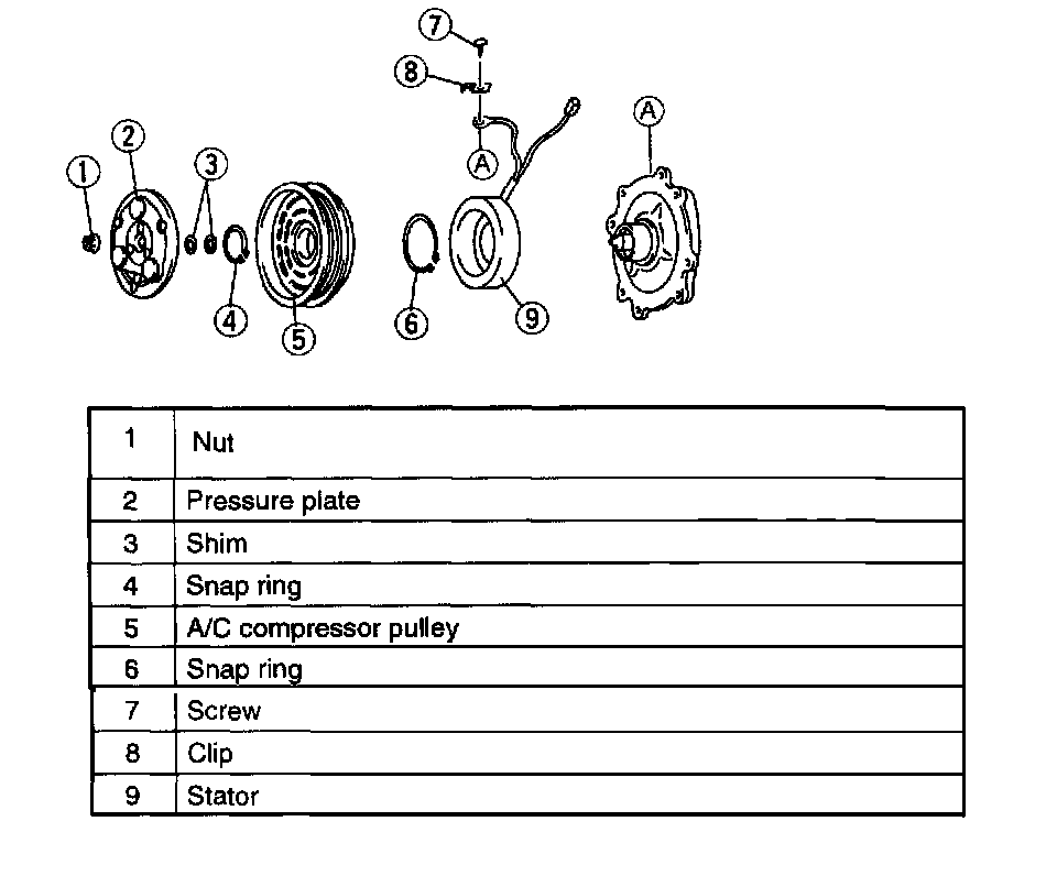 - When removing the A/C compressor pulley, remove it by using a puller.