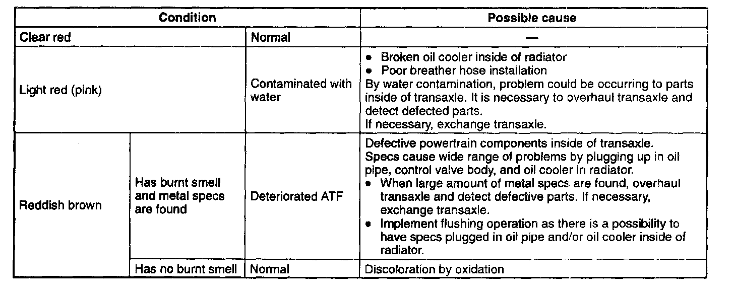 AUTOMATIC TRANSAXLE FLUID (ATF) INSPECTION [GF4A-EL]ATF Condition Inspection