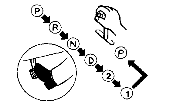 5. While depressing the brake pedal, shift the selector lever to each range (P-1), pausing momentarily in each range.
