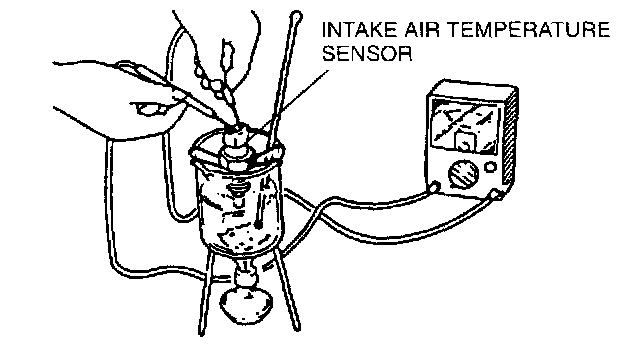 1. Remove the intake air temperature sensor.2. Place the intake air temperature sensor in water with a thermometer and heat the water gradually.