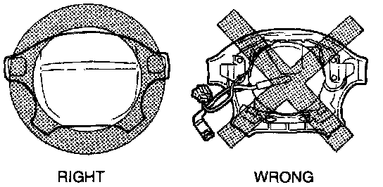 ^ A live air bag module placed face down on a surface is dangerous. If the air bag module deploys, the motion of the module can cause serious injury. Always face the front surface up to reduce the motion of the module in case it accidently deploys.