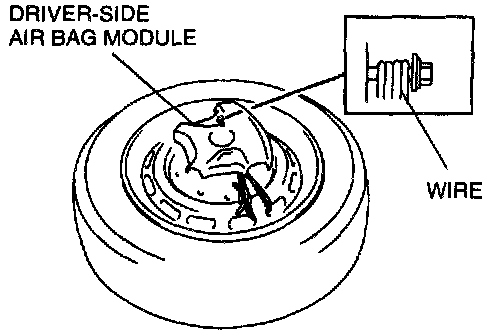 3. Tie the air bag module to the tire wheel with the front of the module facing up. Wrap the wire through the wheel and around the air bag module bolt at least four times.