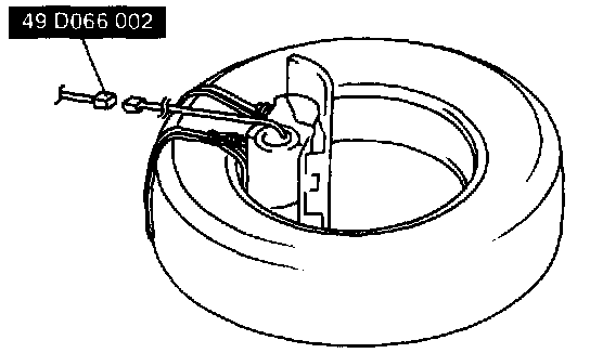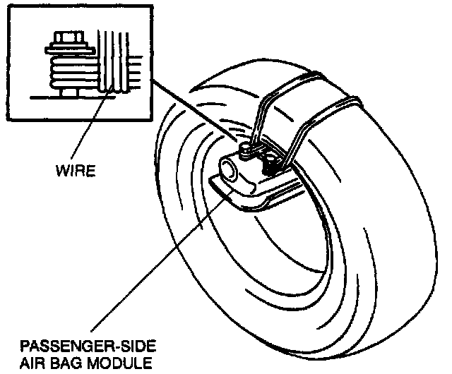 3. Tie the air bag module to the tire wheel with the front of the module facing up. Wrap the wire through the wheel and around the air bag module bolt at least tour times.