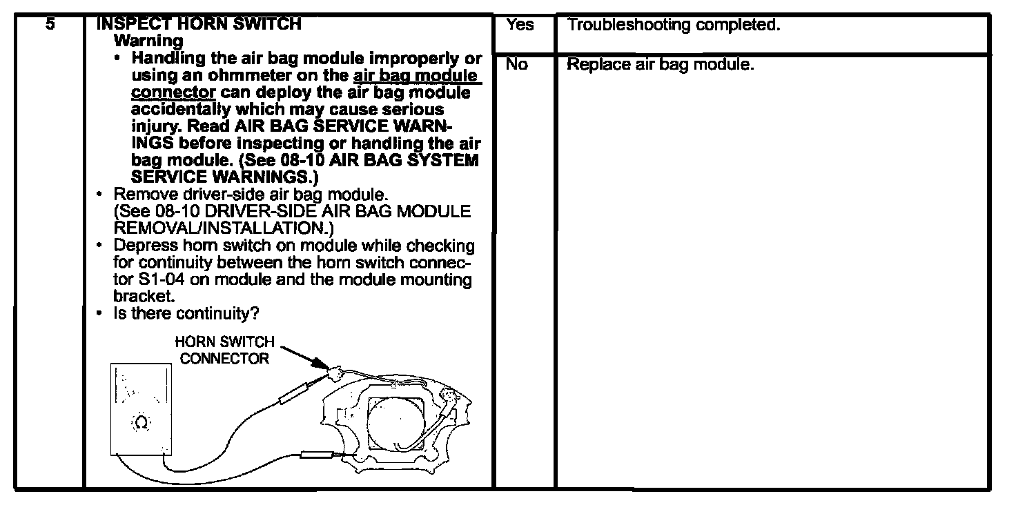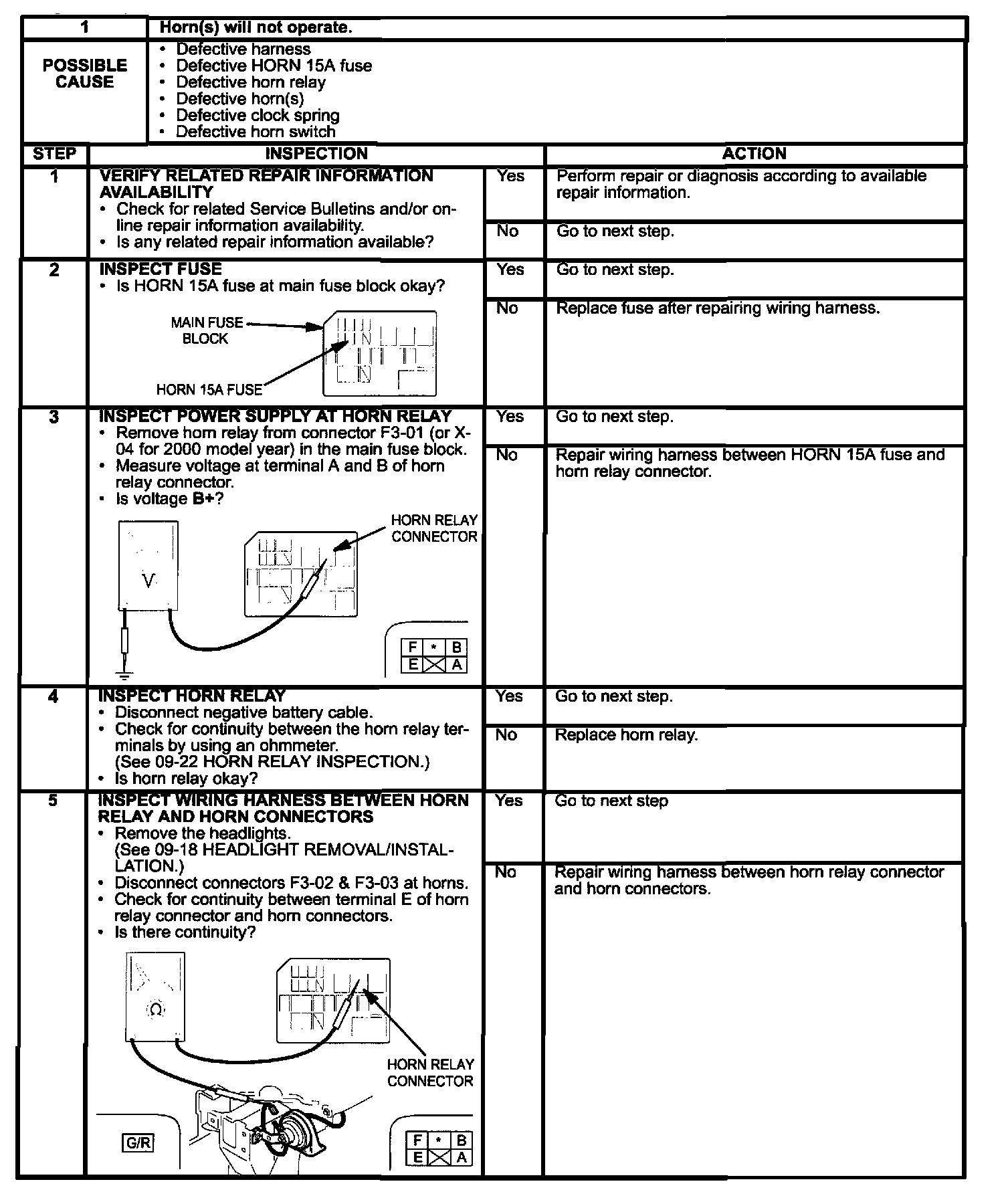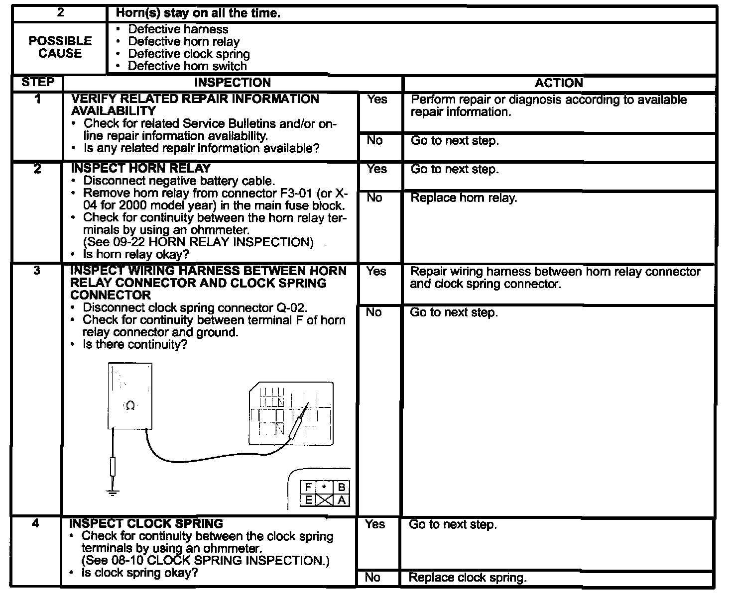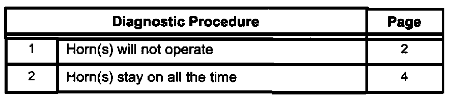 Some vehicles may exhibit the horn(s) being inoperative or staying on all the time. The current Workshop Manuals lack horn diagnostic procedures.