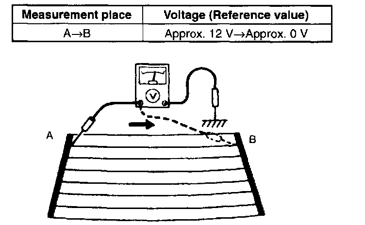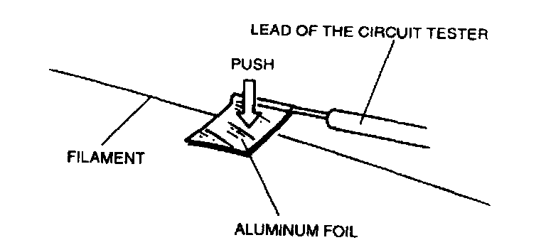 CAUTION: Directly touching the rear defroster filament with the lead of the circuit tester will damage it. Wrap aluminum foil around the end of the lead and test the filament by touching it with the foil.