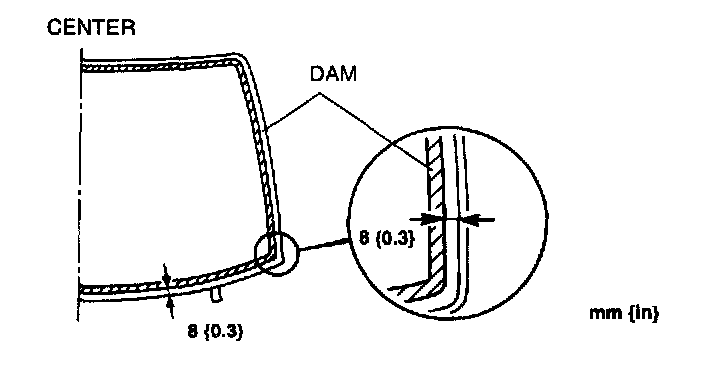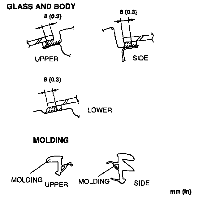 3. Securely bond a dam along the circumference of the glass 8 mm {0.3 in}.