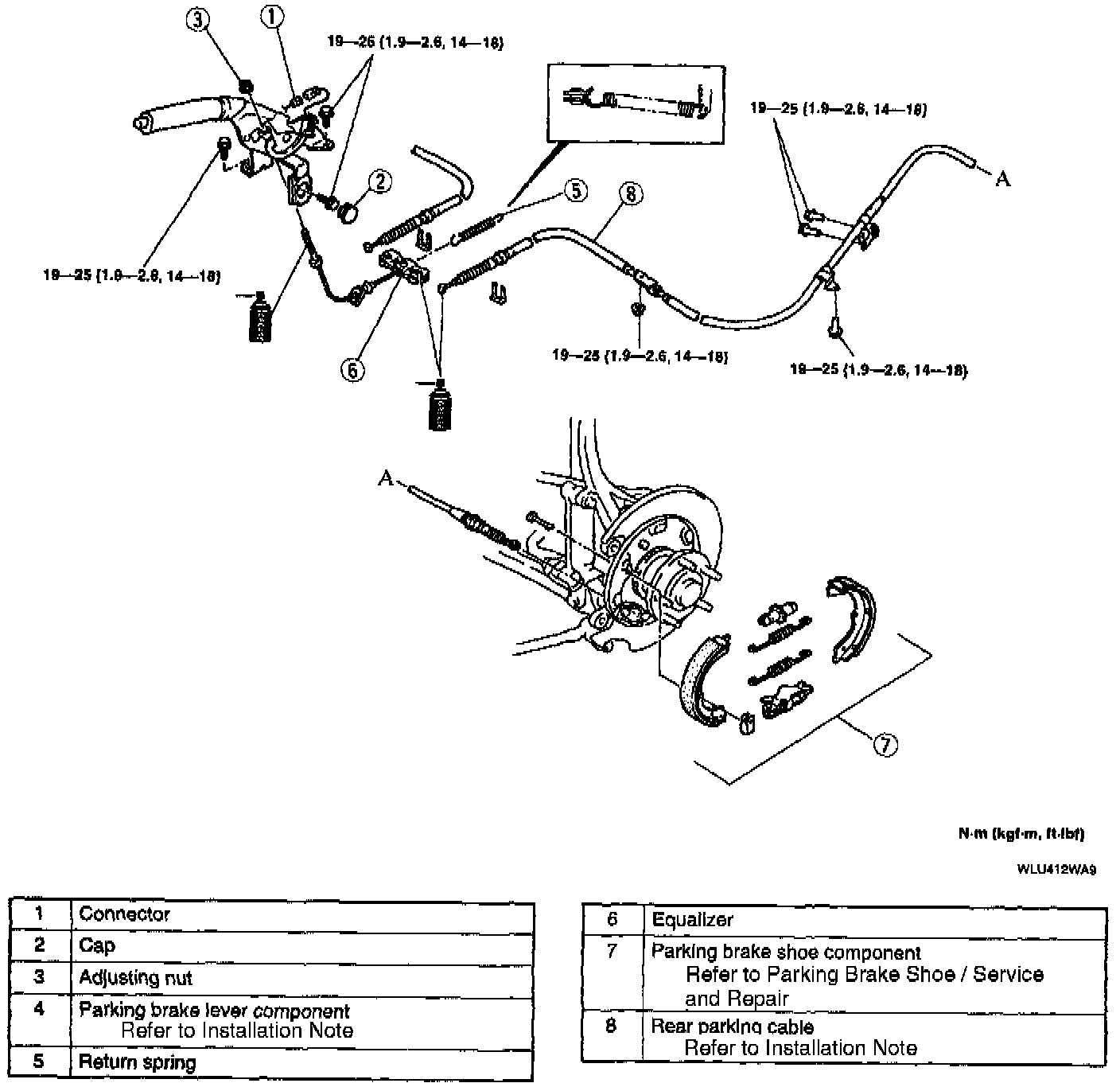 4. After installation, adjust the parking brake lever stroke. Refer to Parking Brake / Adjustments.