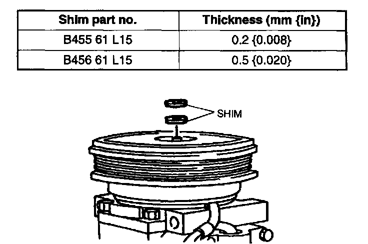 5. If not as specified, install shims to adjust the clearance.