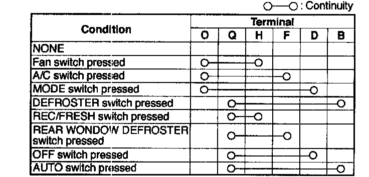 1. Disassemble the heater control component.2. Check for continuity between the terminals of heater control unit by using an ohmmeter.