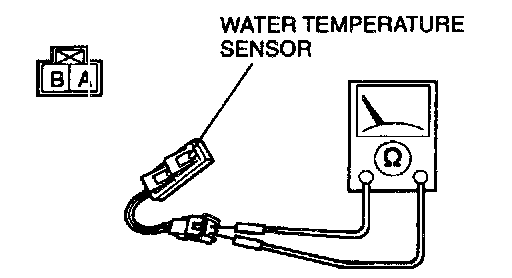 3. Measure the resistance between terminals A and B of the water temperature sensor connector (male).