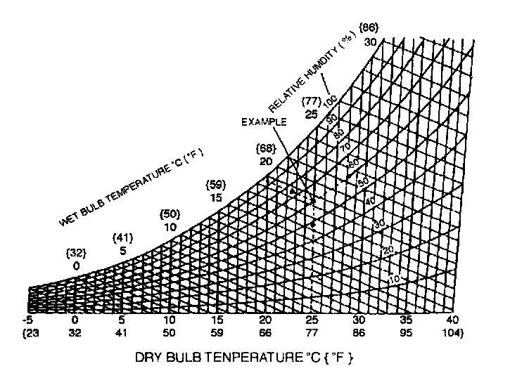 9. After the air conditioning stabilizes, read the wet and dry-bulb thermometer, and then calculate the relative humidity by using the graph.